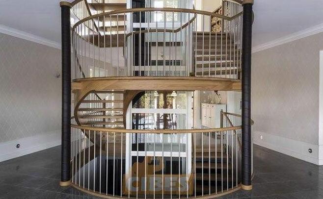 2 如果是圓弧形樓梯配以圓弧形電梯更美觀。